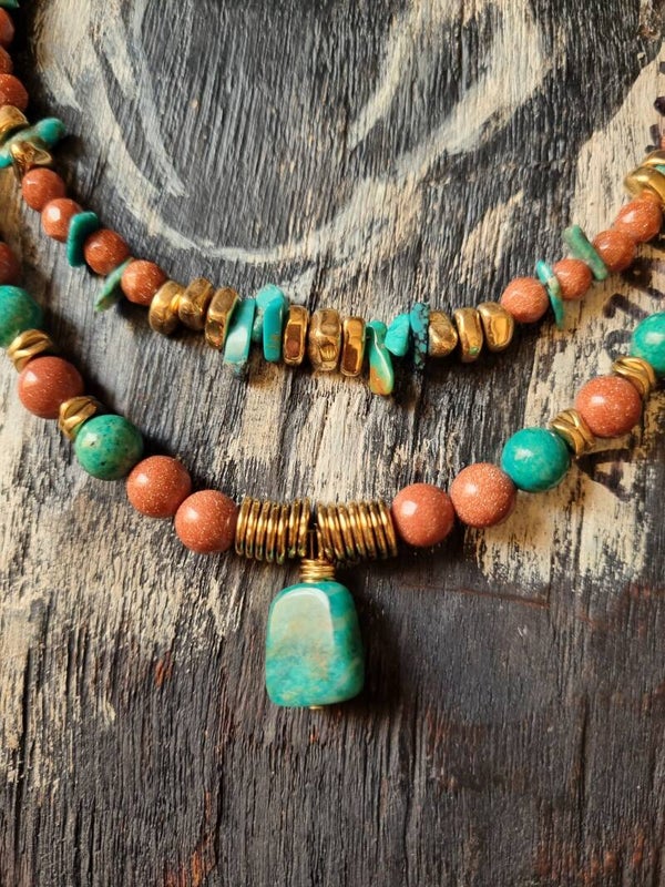 - Amazonite et turquoise de Chine (modèle Amazonite)