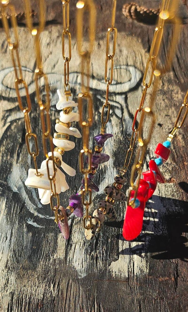 Ce collier unique combine l'élégance d'une chaîne maillon moderne avec la beauté naturelle des perles du Pacifique. Ces perles, aux nuances douces et iridescentes, apportent une touche de sophistication et de lumière à votre décolleté. La chaîne en acier inoxydable assure robustesse et élégance, tandis que le fermoir et anneaux en laiton doré à l'or fin 24 carats ajoutent une finition précieuse et raffinée à cette pièce intemporelle.