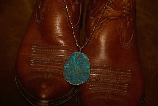 Agate bleue d'Afrique doré à l'or fin(pendentif)