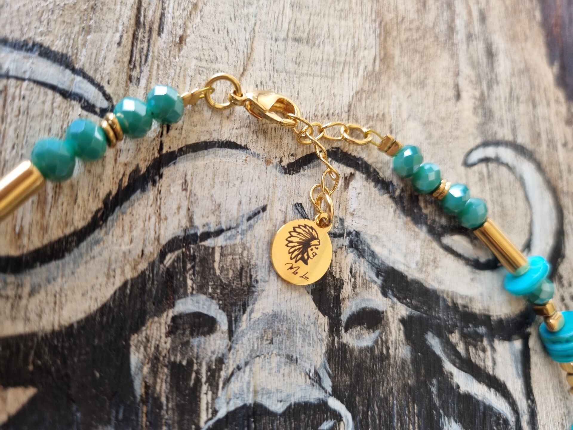En son centre, un pendentif cœur en acier inoxydable symbolise l’amour et l’authenticité, sublimé par des finitions délicates en laiton doré à l’or fin 24 carats.