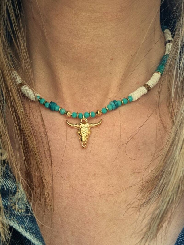 #collierkassandra#inspirationcamargue#styleamerindien#bijouxboheme#bijouxdecreateur#tetedetaureau#perlesheishi#or24carats#mylou#bijouxfaitmain#modeboheme#bijouxartisanaux#bijouxuniques#styleethnique#créationsauthentiques