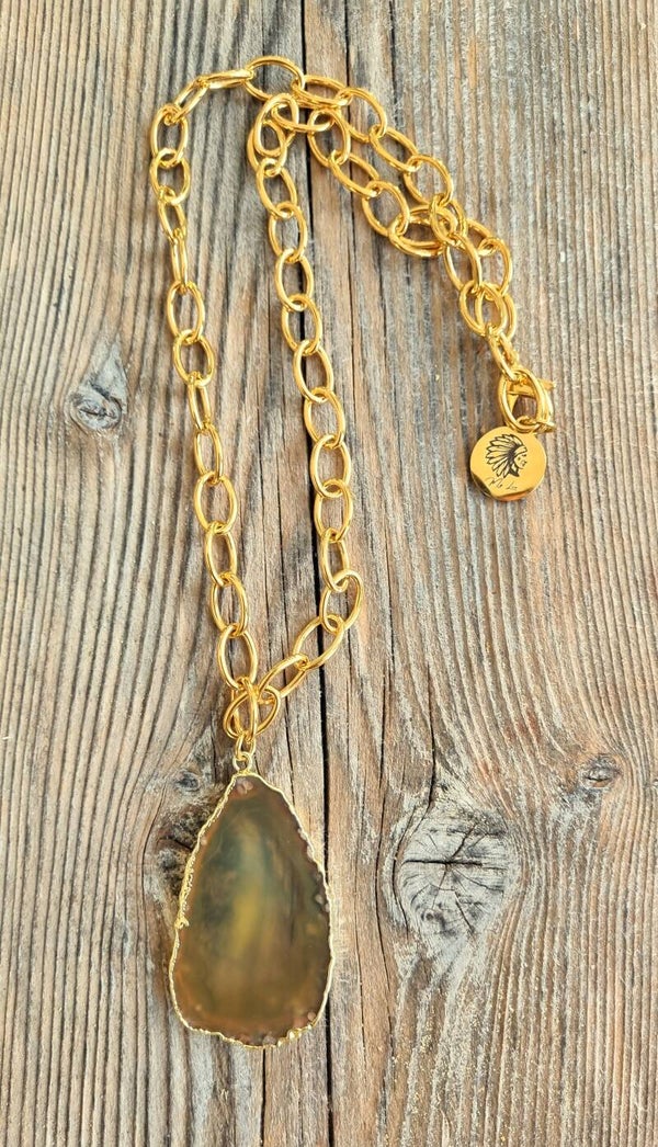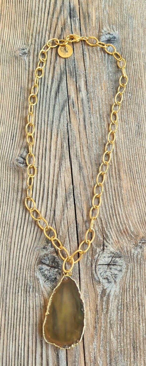 Pendentif en agate d'Afrique doré à l'or fin