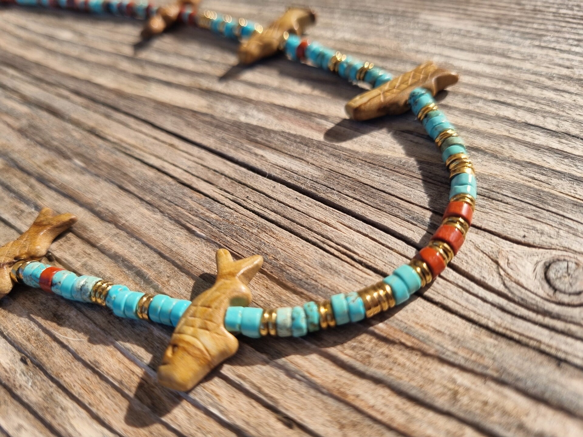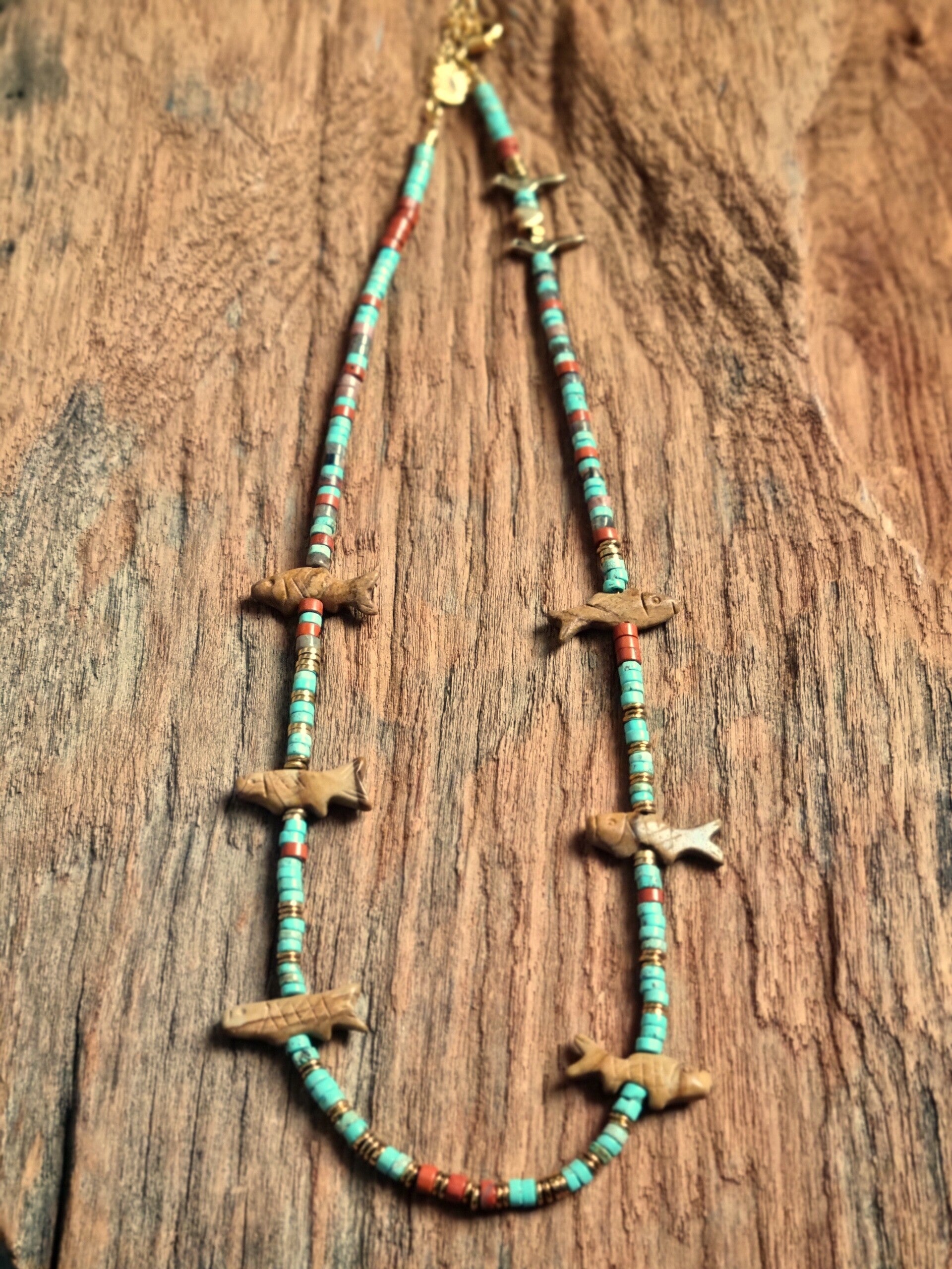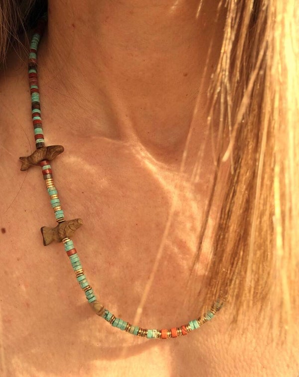Un bijou à la fois frais et sophistiqué, qui capture l’essence de l’été et du style bohème chic. Inspiré par les traditions natives et l'esprit des fétiches, ce collier célèbre le lien entre la nature et l'élégance.
