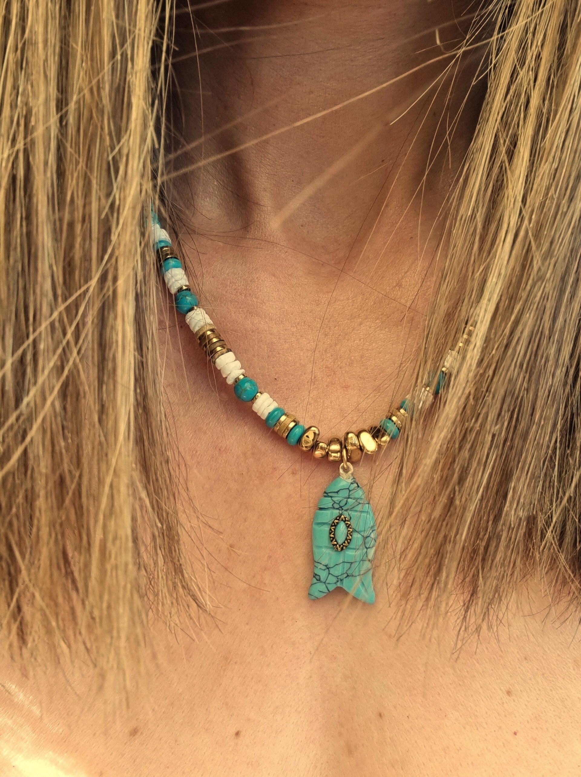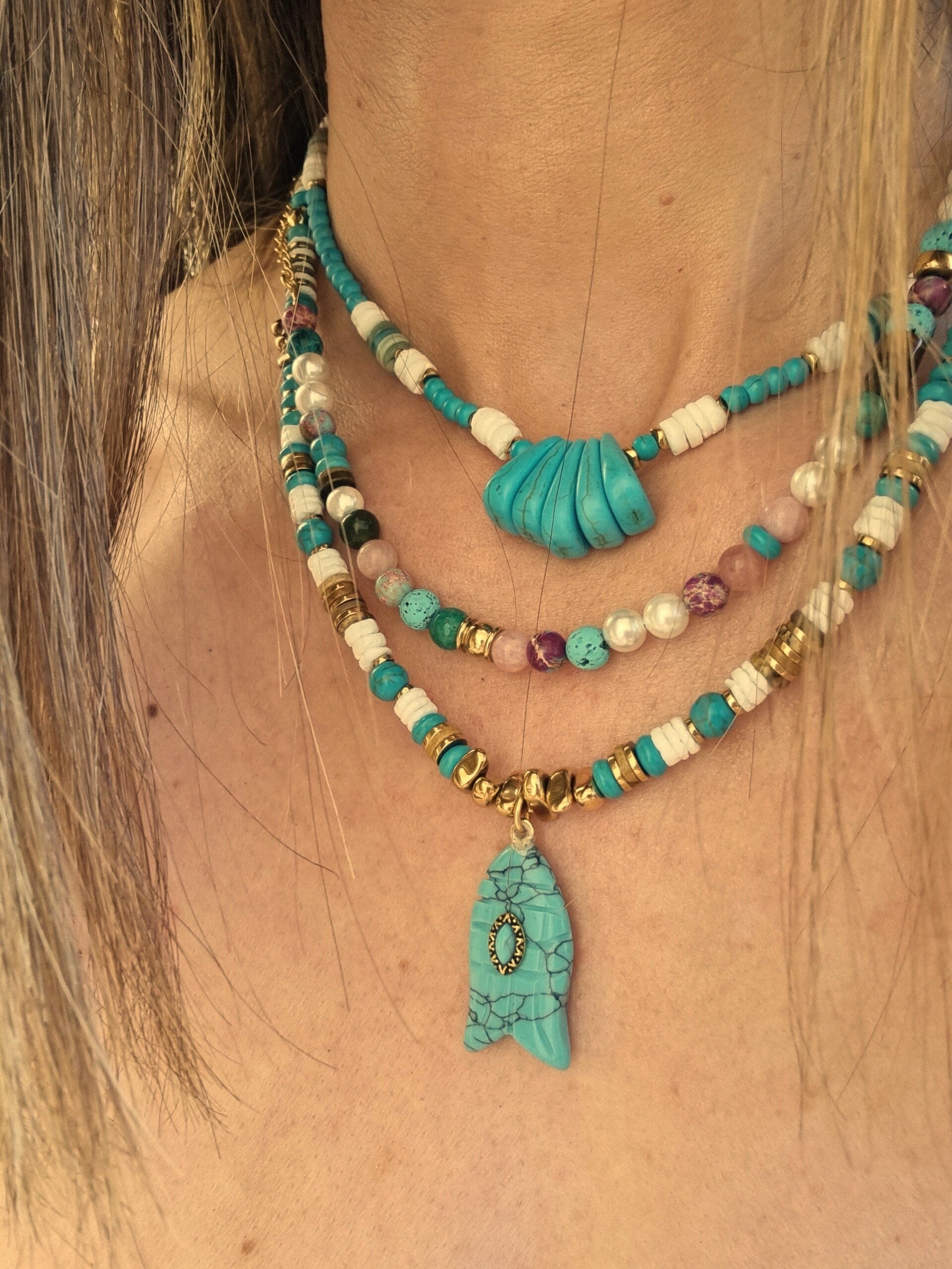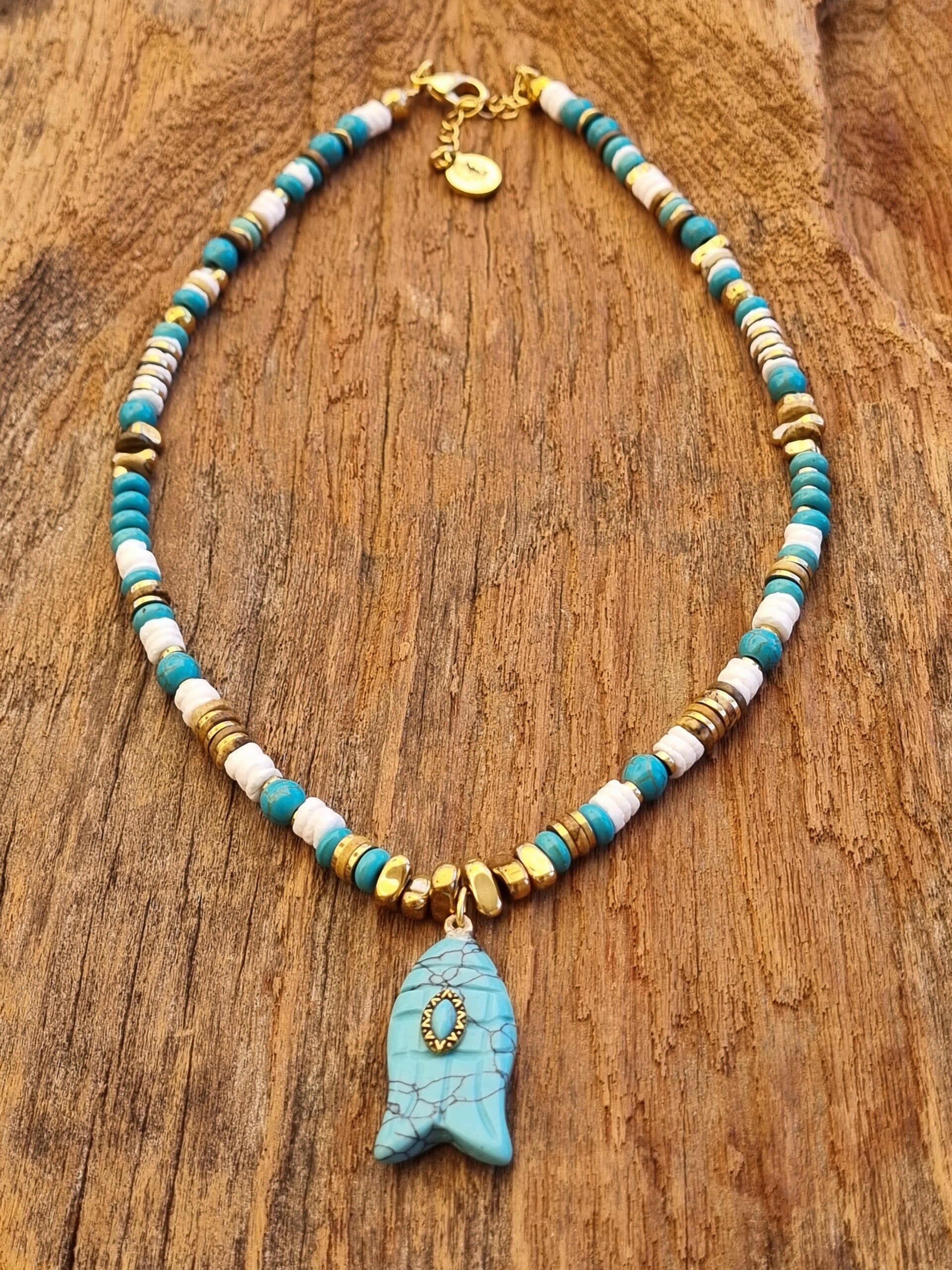 Avec ses teintes fraîches et naturelles, le collier NOE est idéal pour sublimer vos tenues avec une touche bohème chic, tout en portant un bijou chargé de sens.
