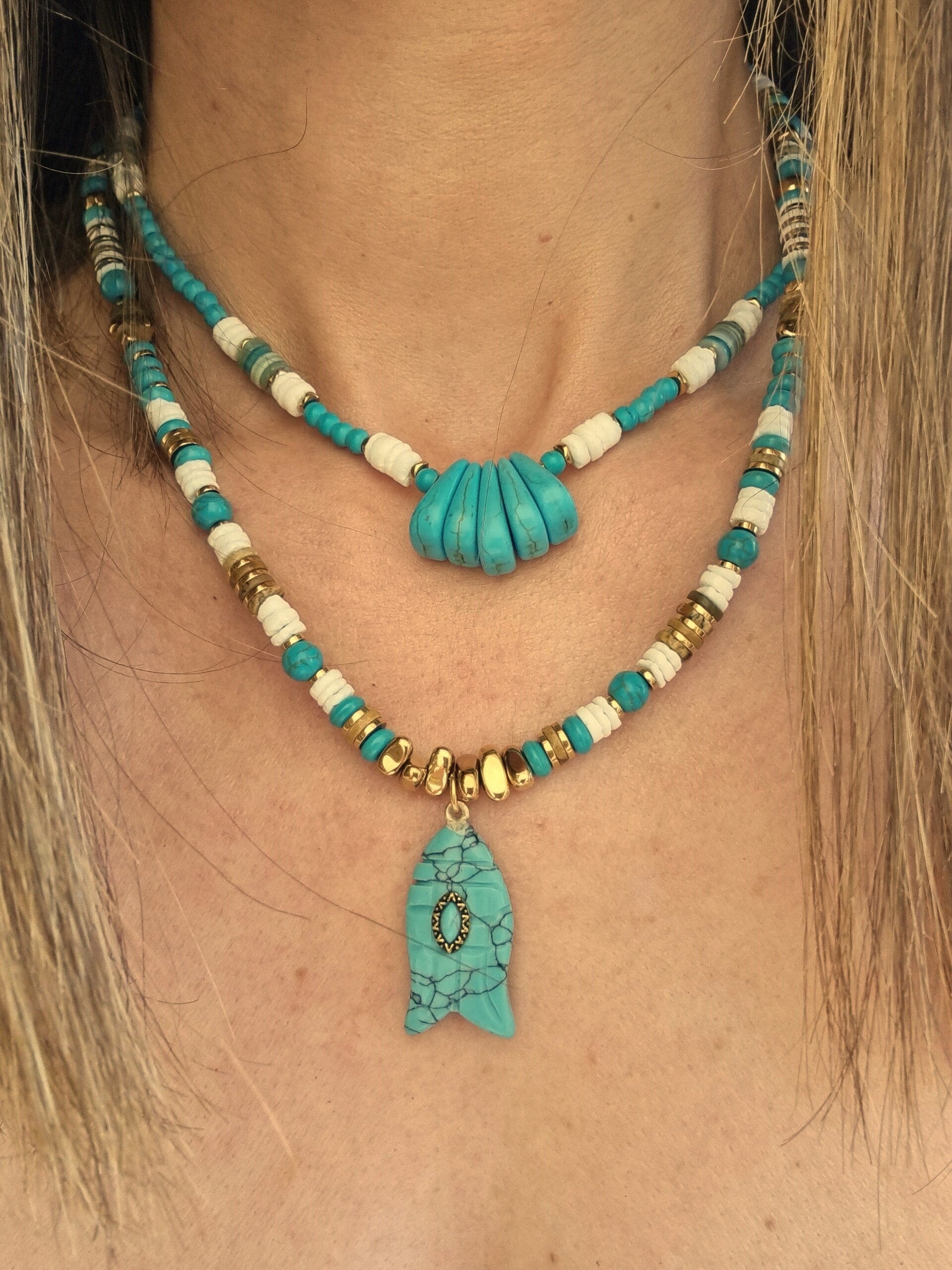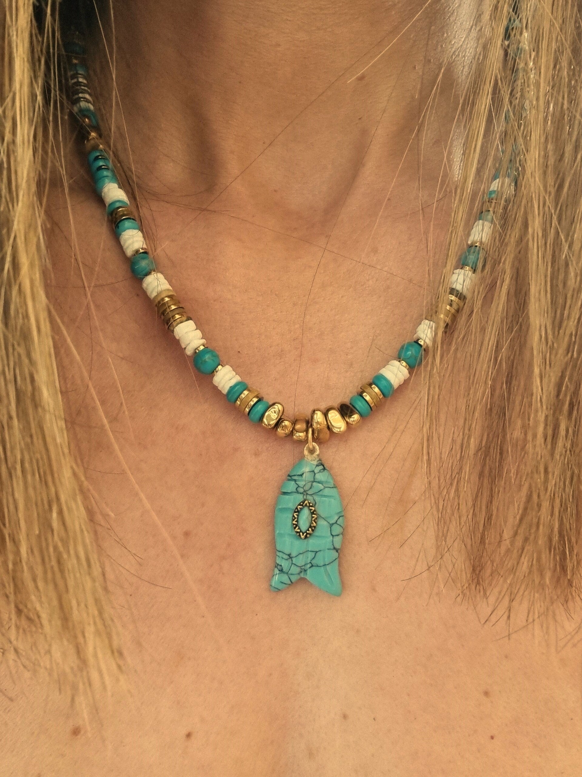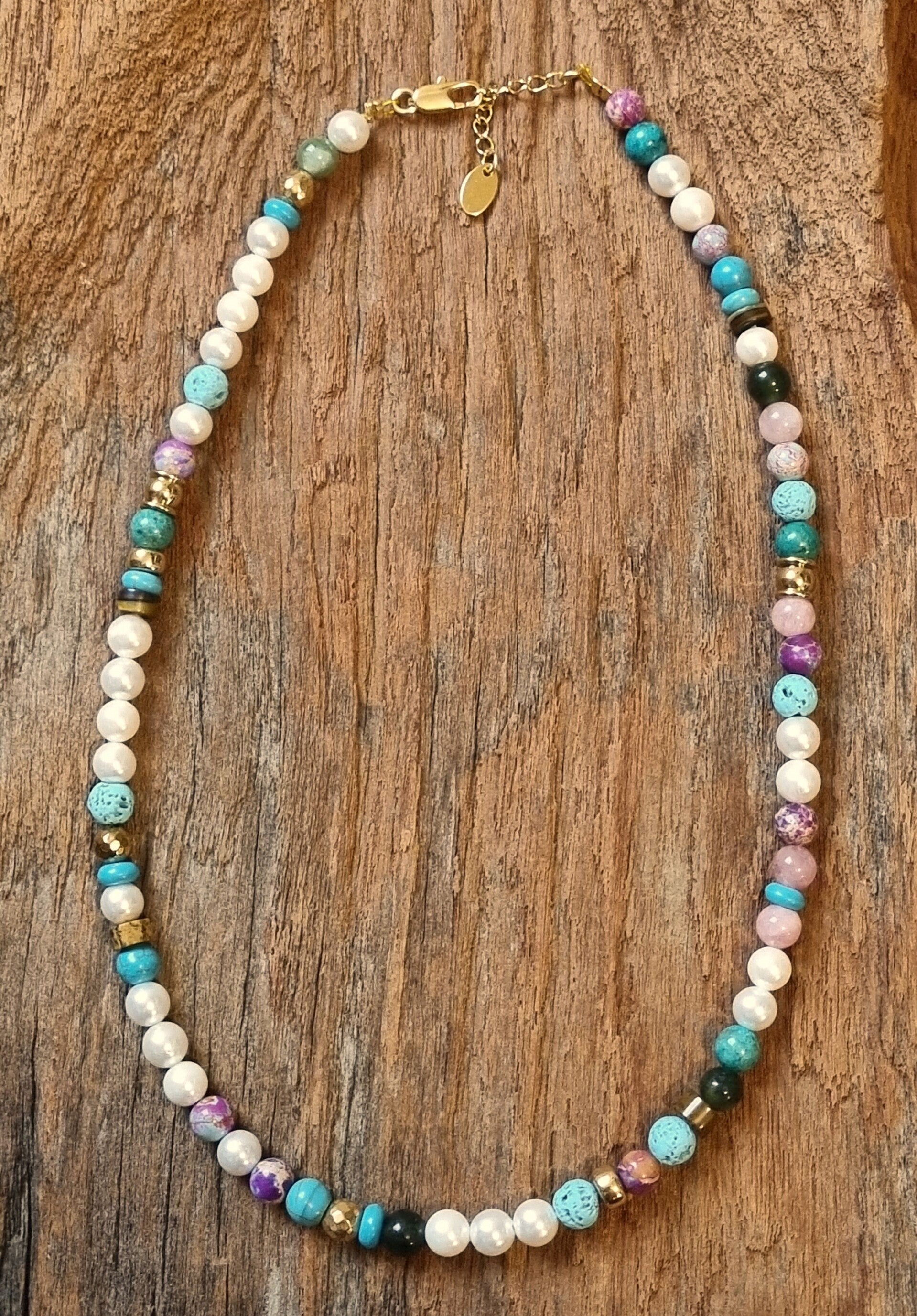 Avec ses teintes fraîches et naturelles, le collier NOE est idéal pour sublimer vos tenues avec une touche bohème chic, tout en portant un bijou chargé de sens.